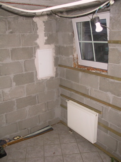 Die Fassade des Neubaus ist zu dämmen und zu verputzen