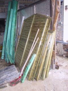 Mit einem Bausatz für einen Holzschuppen im Hof