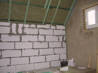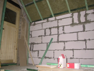 Mit einer Mauer aus Porenbetonsteinen konnte auch die Aussenwand deutlich isoliert werden.