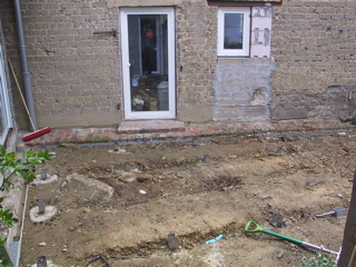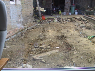 Jetzt entsteht eine stabile Unterkonstruktion für eine neue Holzterrasse.