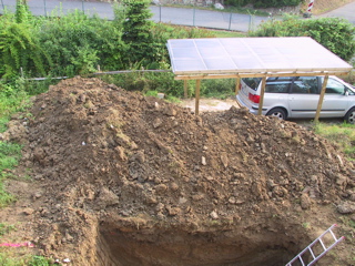 Durch den Aushub haben wir fast keinen Raum mehr in diesem Teil des Gartens.