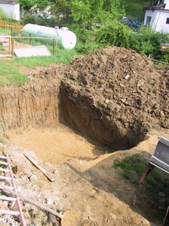 Für unseren Regenwassertank haben wir ein "kleines Loch" im Garten buddeln lassen.