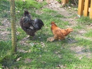Unser Garten hat hat zwei neue Bewohner. Ein Seidenhahn und eine Cochin-Henne ...