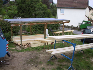 Jetzt warten wir auf gutes Wetter um mit dem Dachstuhl zu starten...